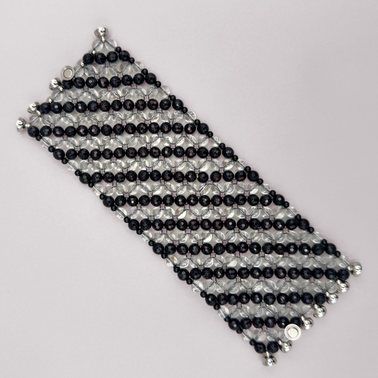 Magnetic Bracelet in Black Onyx + Clear Quartz