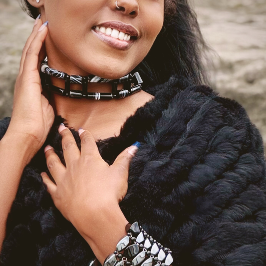 SAHARA S4 Choker in Black Onyx + Clear Quartz