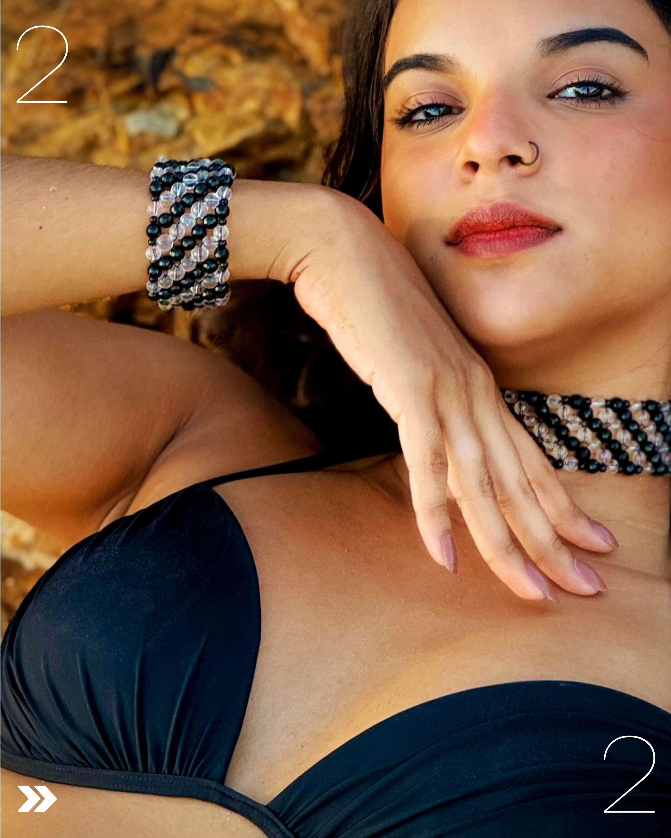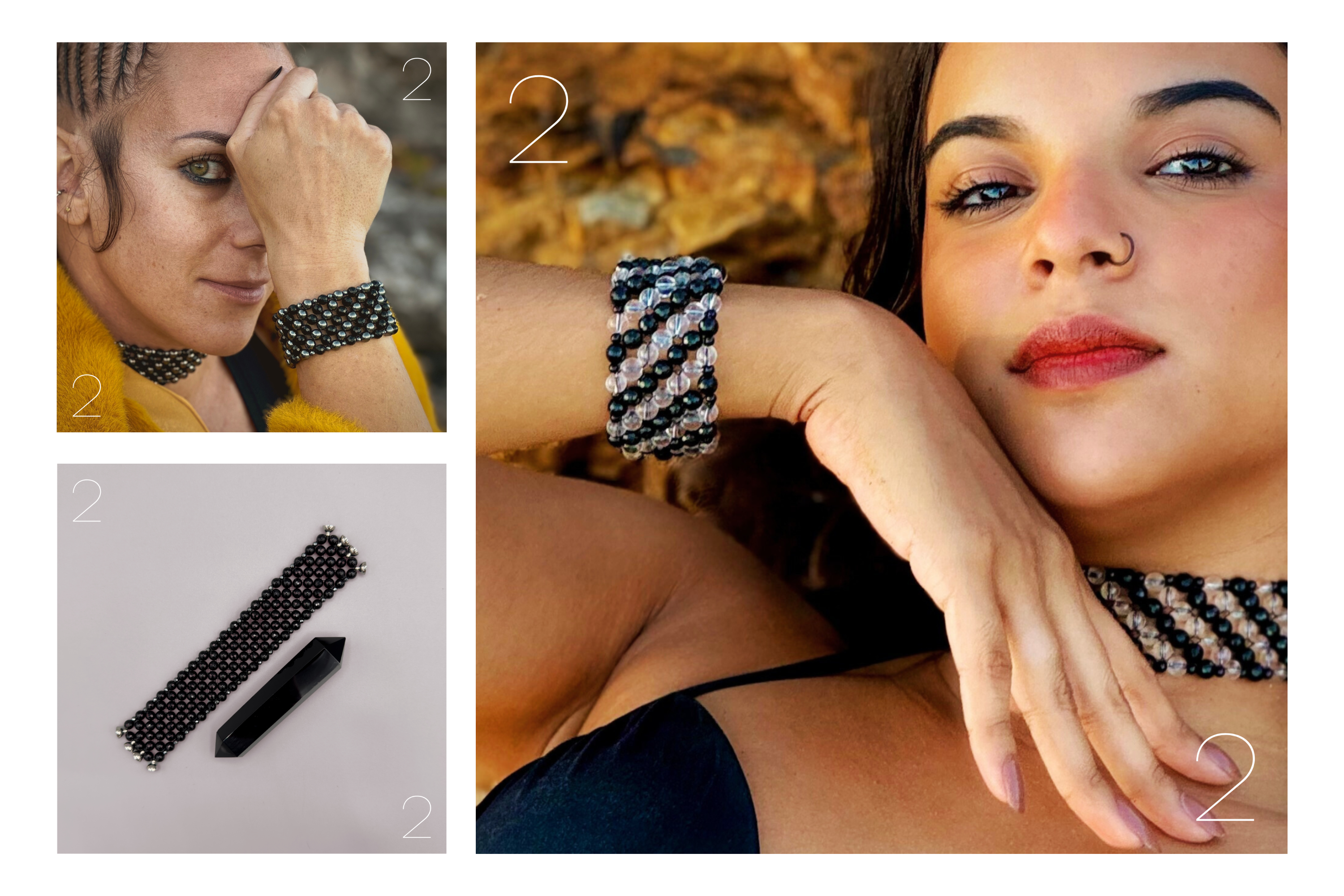 Geometry-Inspired Jewelry Handwoven from Natural Crystals.