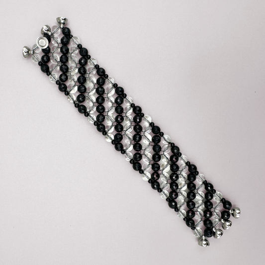 Magnetic Bracelet in Black Onyx + Clear Quartz