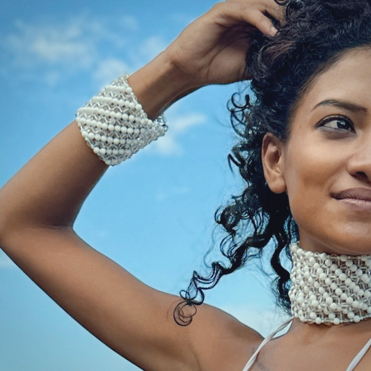 SAHARA S8 Bracelet in White Shell + Clear Quartz