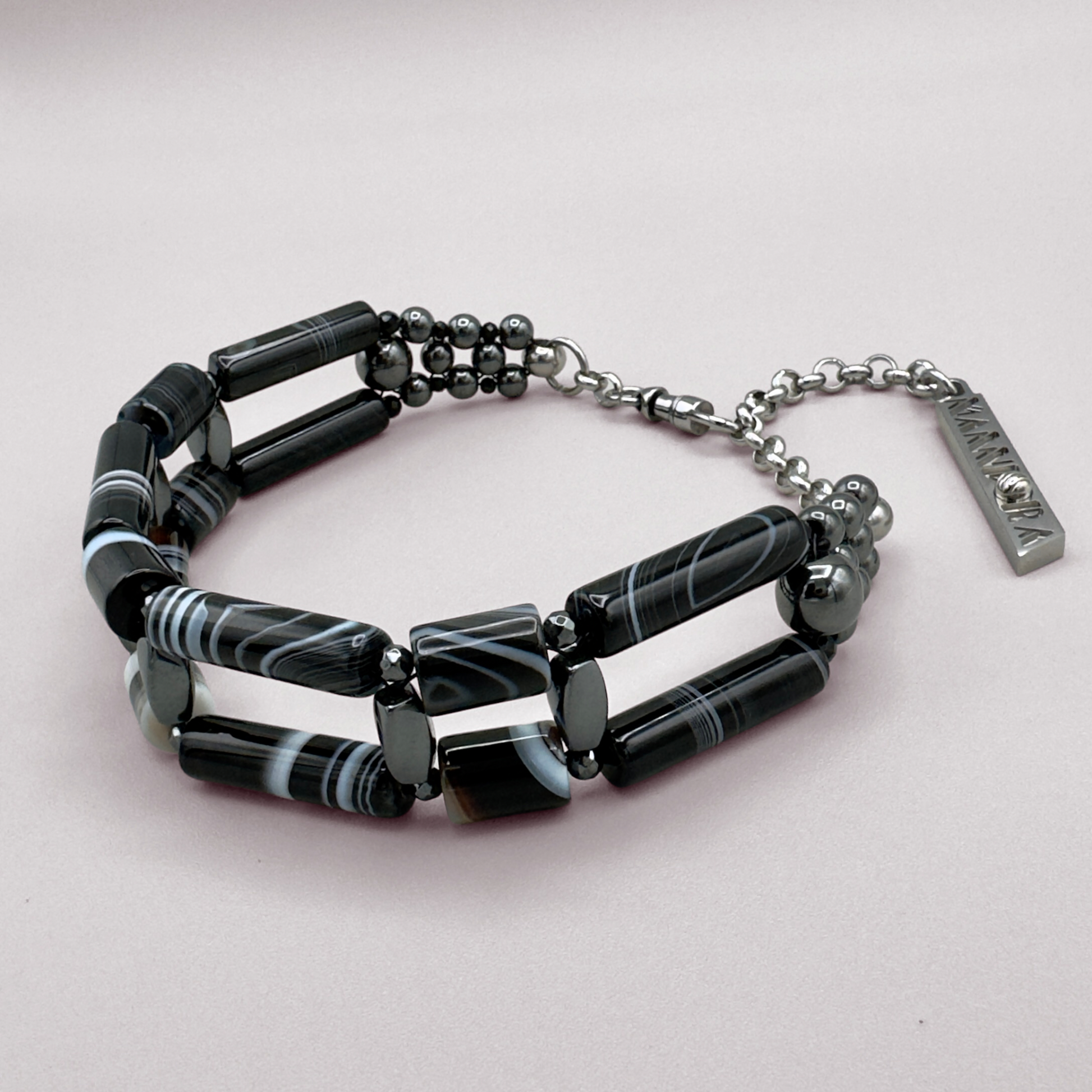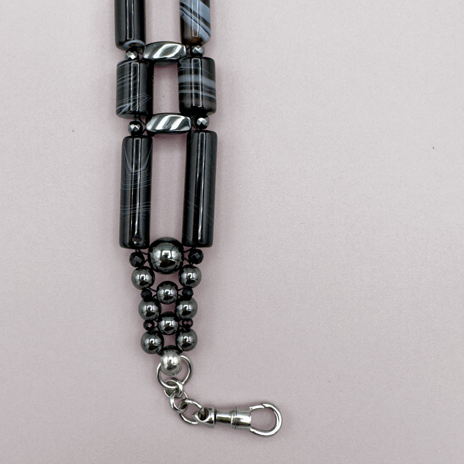 Style notes: make a statement like no other wearing this exclusive rarity. Adjust it to the length you desire, however, it was designed to be a tight fit. Style it with the matching Black Sardonyx + Hematite Bracelet.