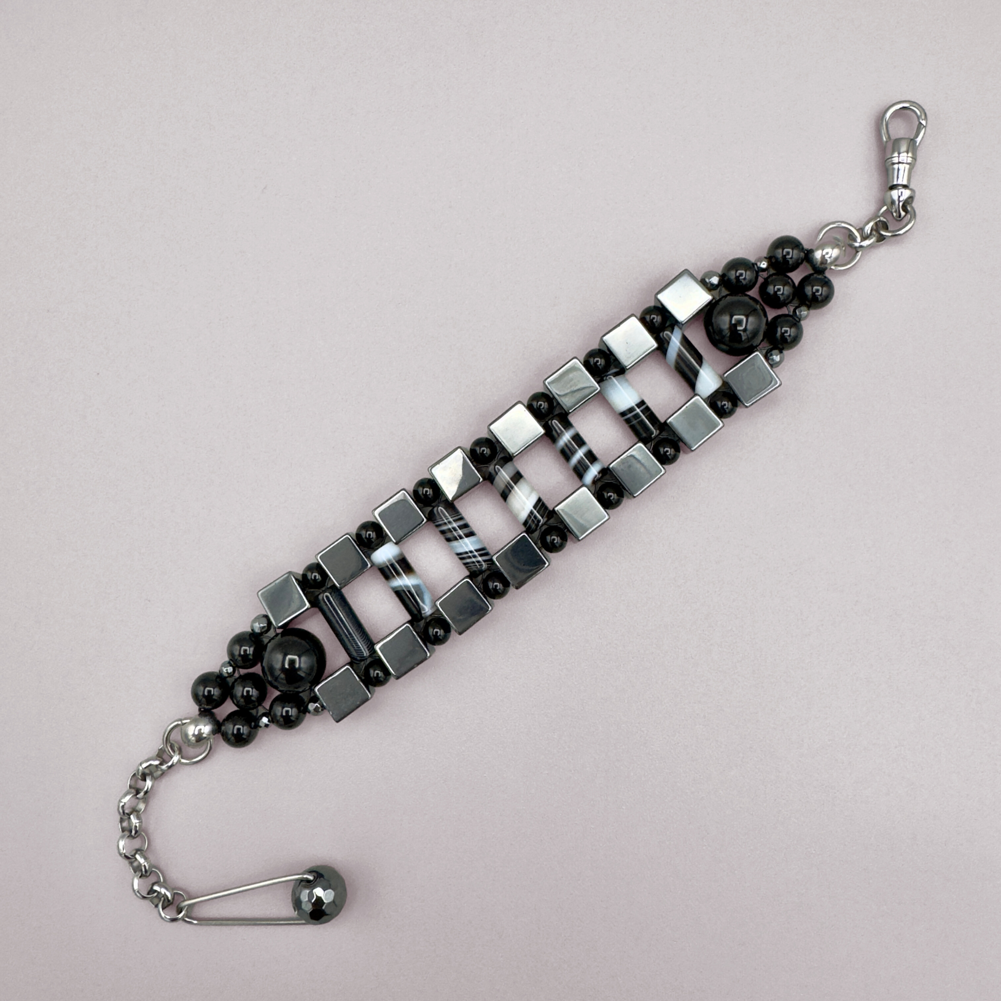 Style notes: thanks to the pair of exceptionally strong jewelry magnets, this piece can be put on single-handedly. Just let the magnets leap together and the Bracelet is secured. Adjust the adjustable length model to the length you desire. Style it with the matching Hematite + Black Sardonyx Necklace.