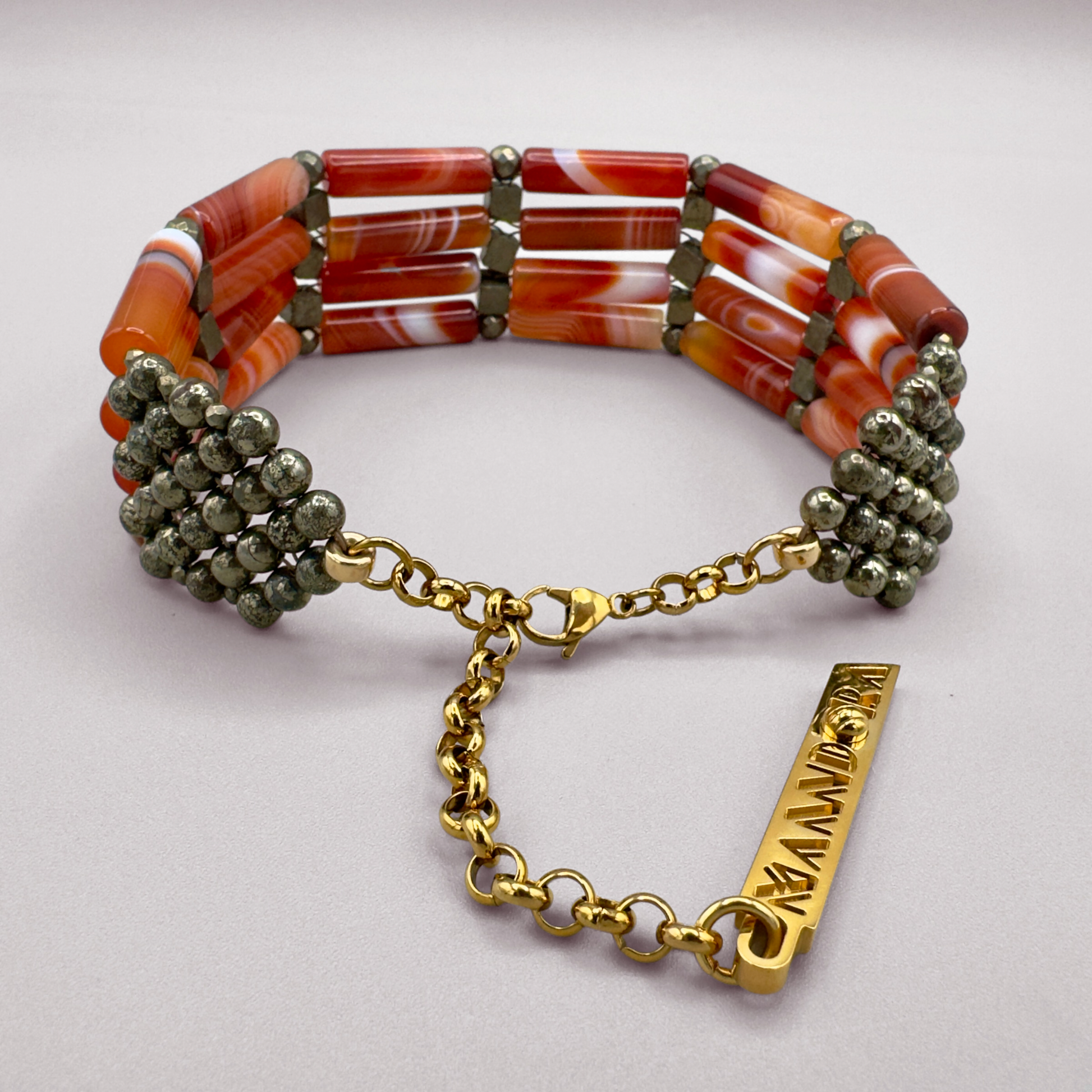 Style notes: make a statement like no other wearing this exclusive rarity. Adjust it to the length you desire, however, it was designed to be a tight fit. Style it with the matching Red Sardonyx + Pyrite Bracelet.