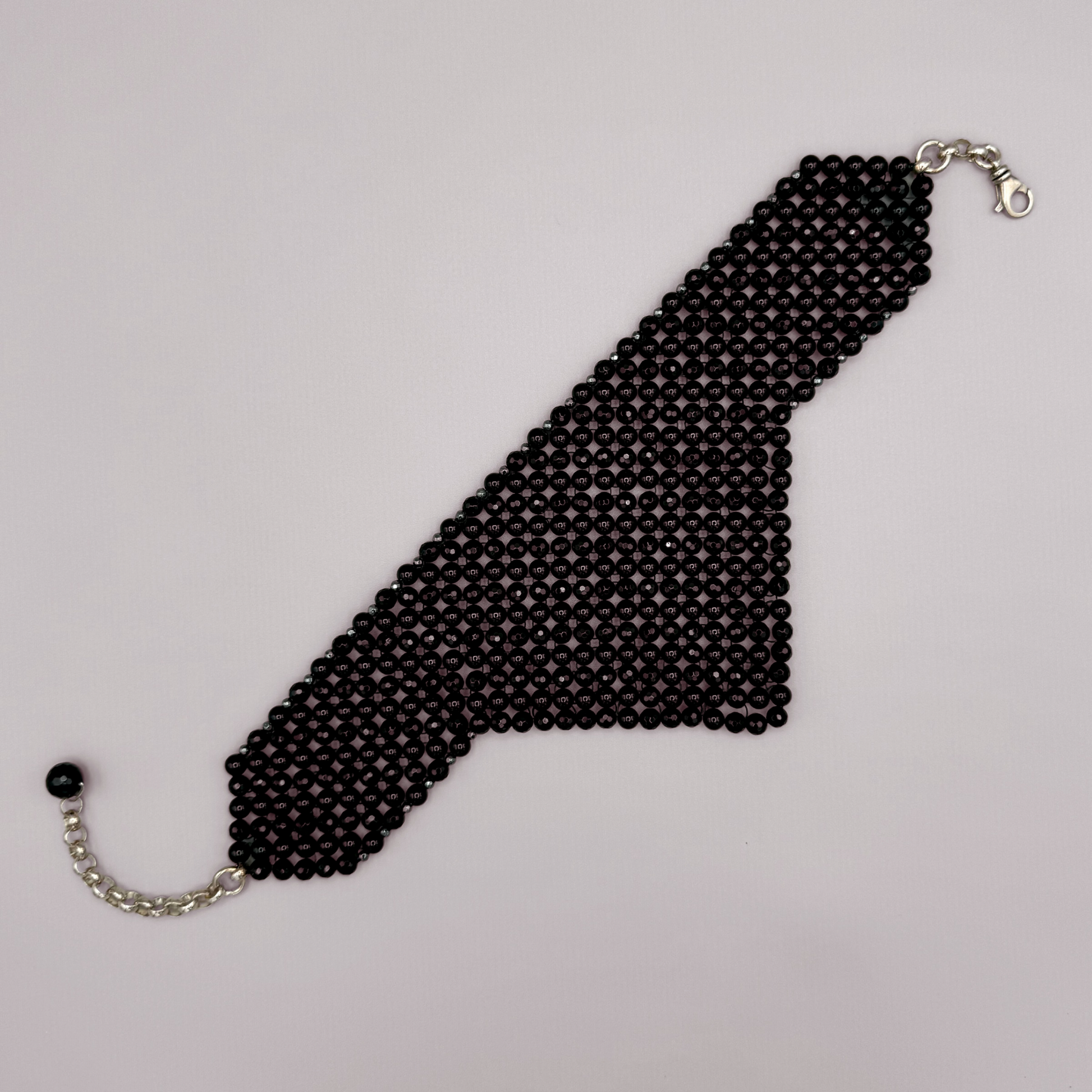 Style notes: the SAHARA DRAMATIC Choker Necklace is a daring reinterpretation of the classic Choker Necklace. The geometrically minimalist design features a triangular drop that elegantly descends from the choker band. Adjust it to the length you desire, however it fits best if sitting high and hugging the neck tightly. Style it with the matching SAHARA Bracelet in Black Onyx.