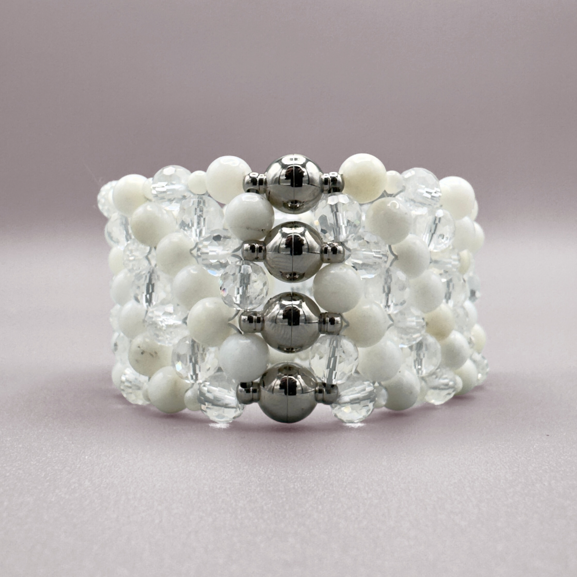 SAHARA S4 Bracelet in White Shell + Clear Quartz