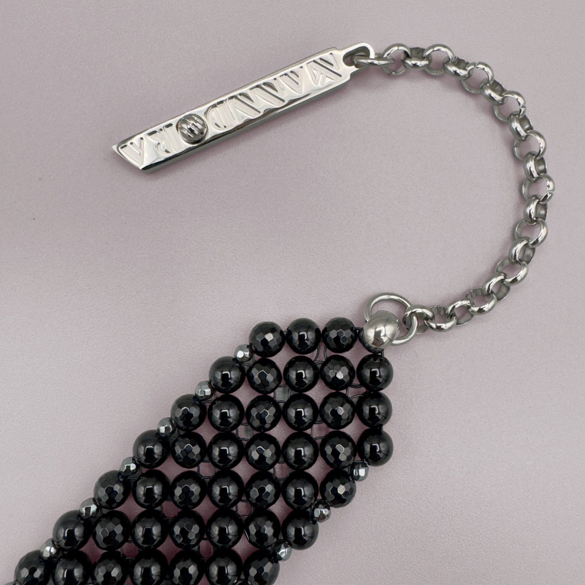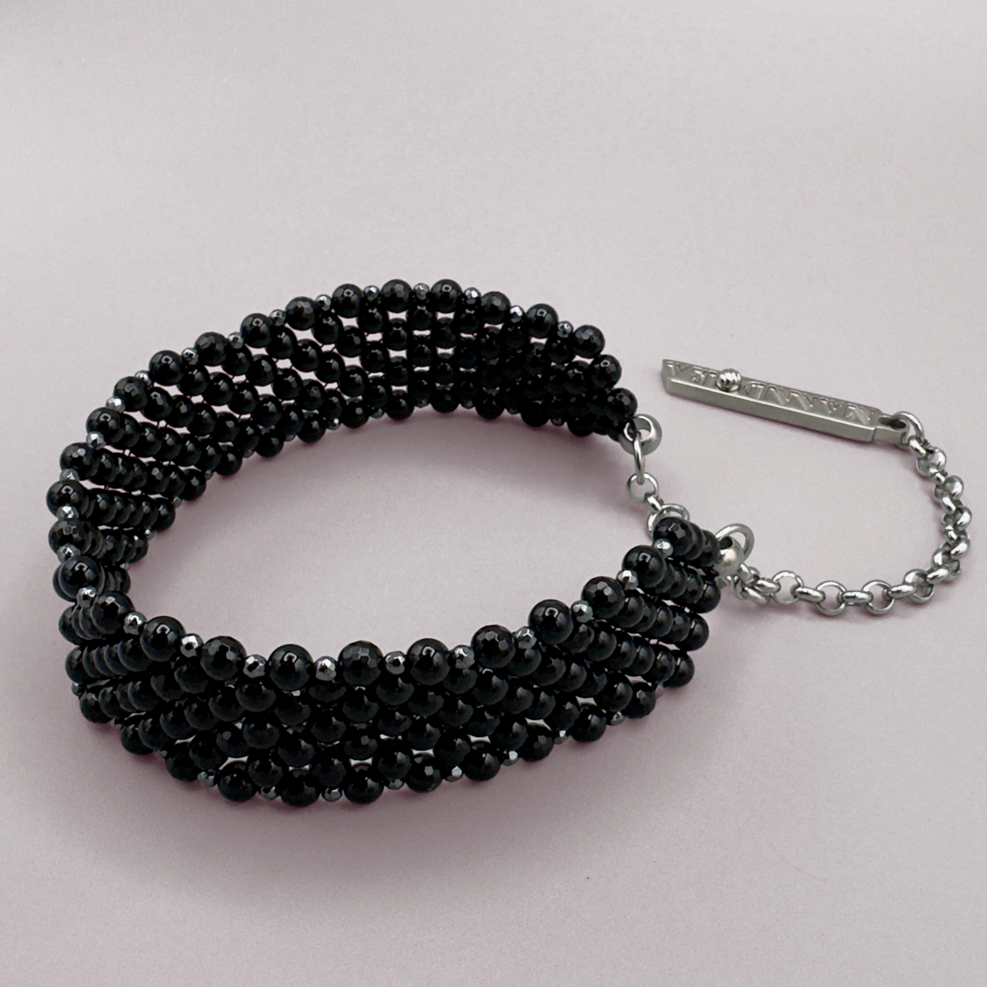 - Genuine Black Onyx and a touch of Synthetic Hematite Crystals