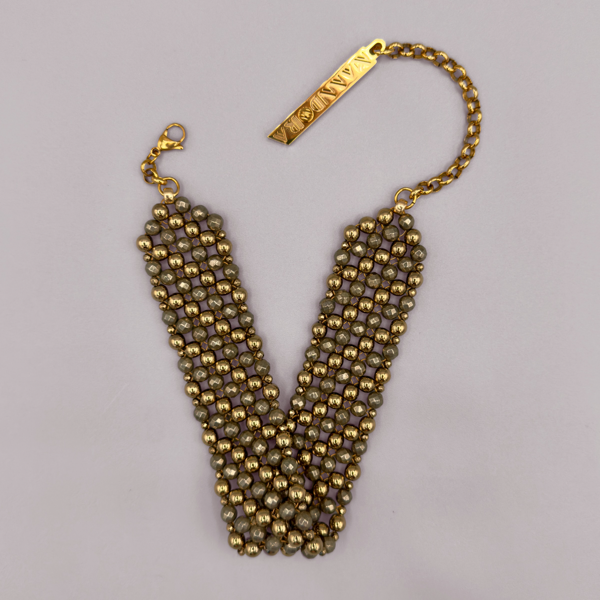 Style notes: this elegantly slim model of the SAHARA Choker Necklace collection makes a great layering Necklace, or a tastefully petite piece if worn solo. Adjust it to the length you desire, however, it was designed to be a tight fit. Style it with the matching SAHARA Bracelet in Pyrite + Gold.