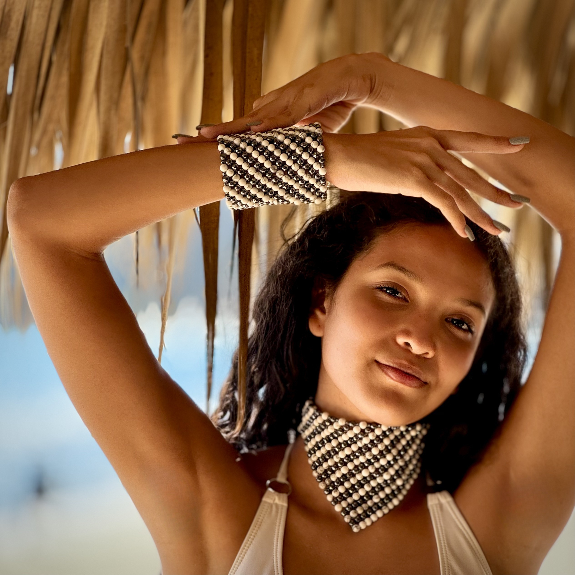 Style notes: the boldest and widest model of the SAHARA Bracelet collection, this massive statement of a Bracelet is guaranteed to turn heads with its magnificent size. Thanks to the row of strong jewelry magnets, this piece can be put on single-handedly. Just let the magnets leap together and the Bracelet is secured. Style it with the matching SAHARA Black Onyx + Clear Quartz Choker Necklace.