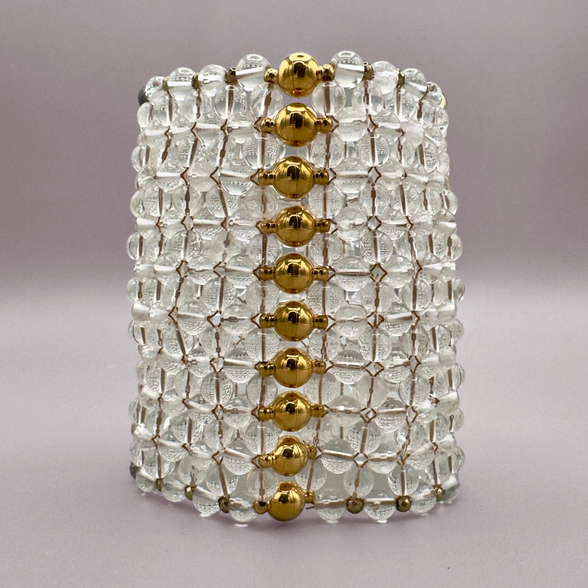 Style notes: the boldest and widest model of the SAHARA Bracelet collection, this massive statement of a Bracelet is guaranteed to turn heads with its magnificent size. Thanks to the row of strong jewelry magnets, this piece can be put on single-handedly. Just let the magnets leap together and the Bracelet is secured. Style it with the matching SAHARA Choker Necklace in pure Clear Quartz.
