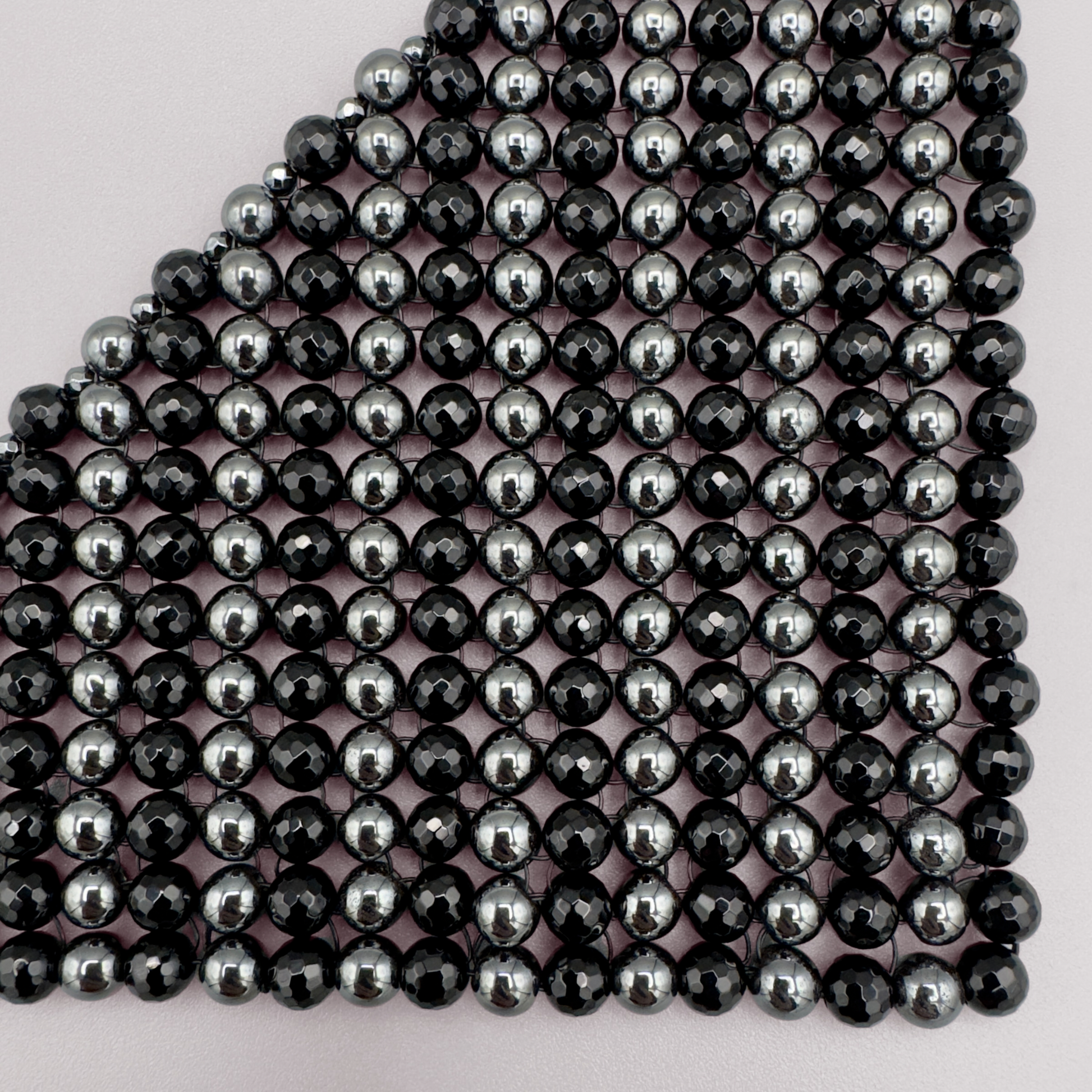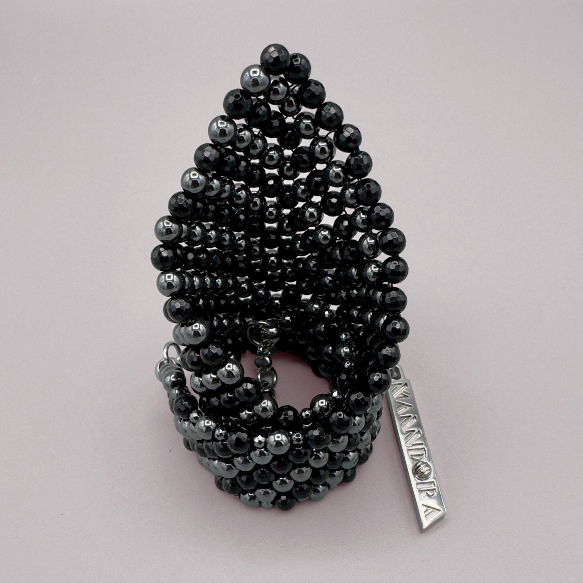 - Genuine Black Onyx + Synthetic Hematite Crystals