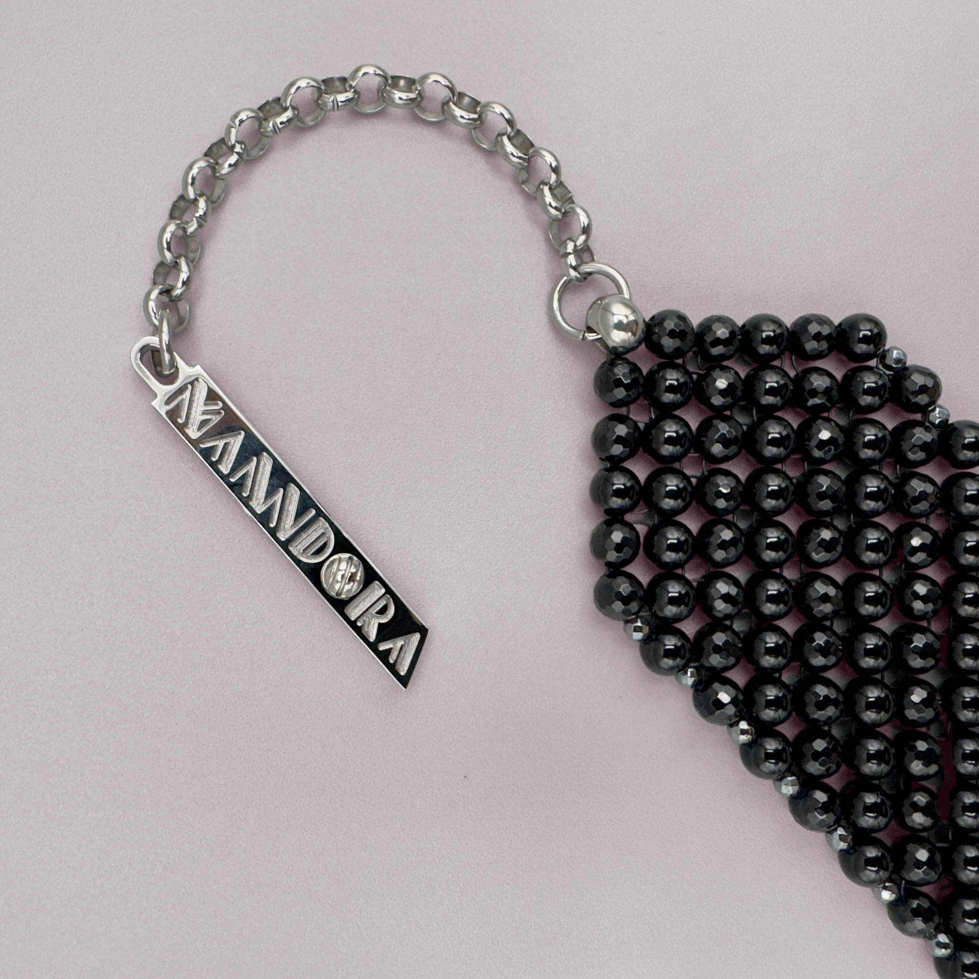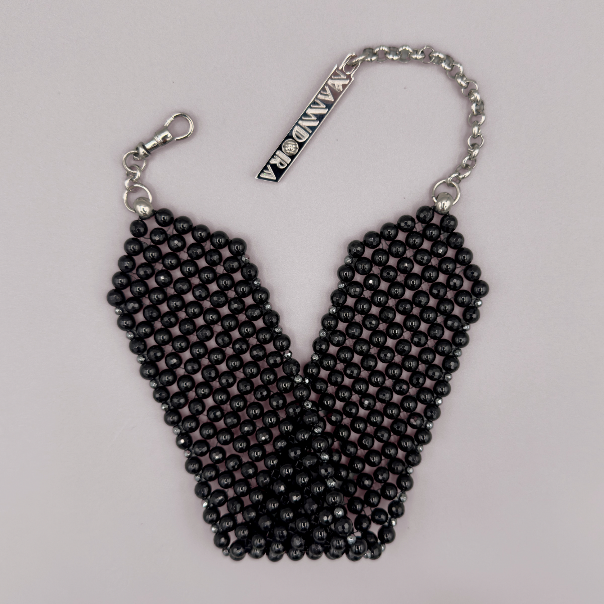 Style notes: a remarkably wide model of the SAHARA Choker Necklace collection; a standout accessory that generously covers a significant portion of the neck. Adjust it to the length you desire, however, it was designed to be a tight fit. Style it with the matching SAHARA Bracelet in pure Black Onyx.