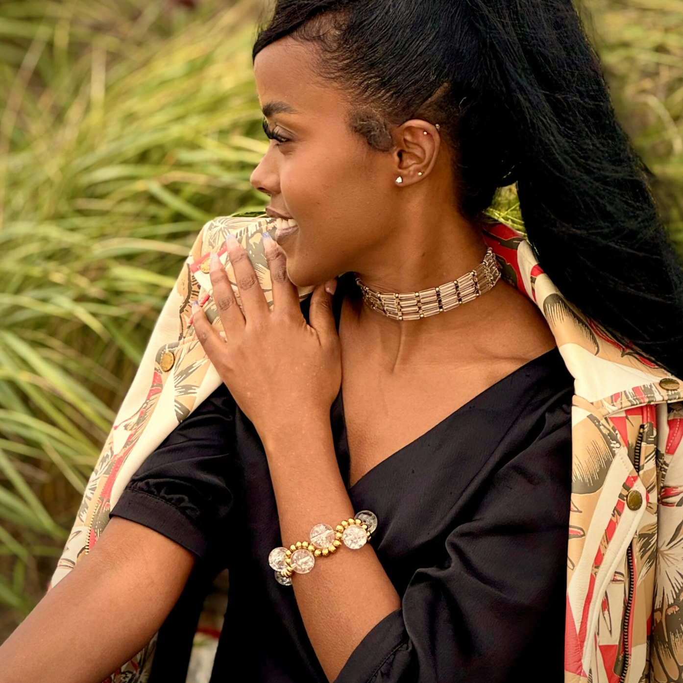 SERPENT 20 Bracelet in Crackle Quartz + Gold