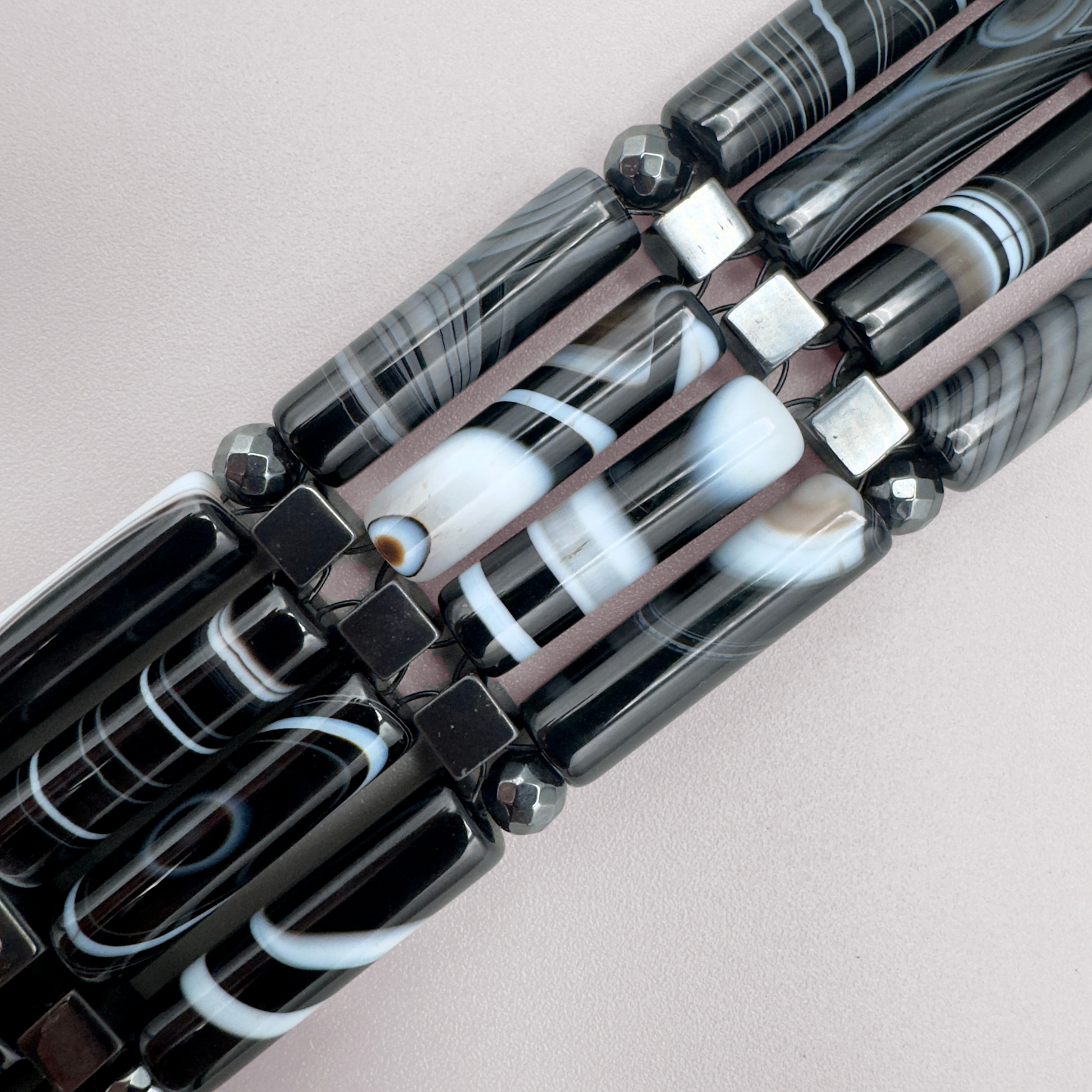 - Genuine Black Sardonyx & Synthetic Hematite Crystals