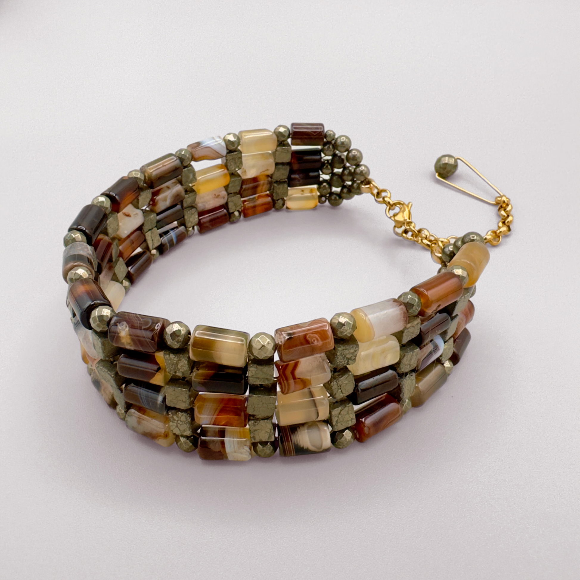 Brown Agate + Pyrite Choker