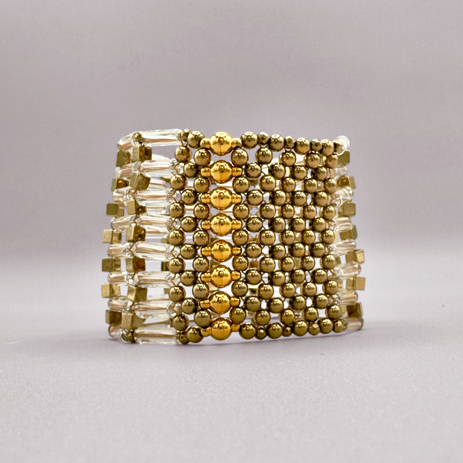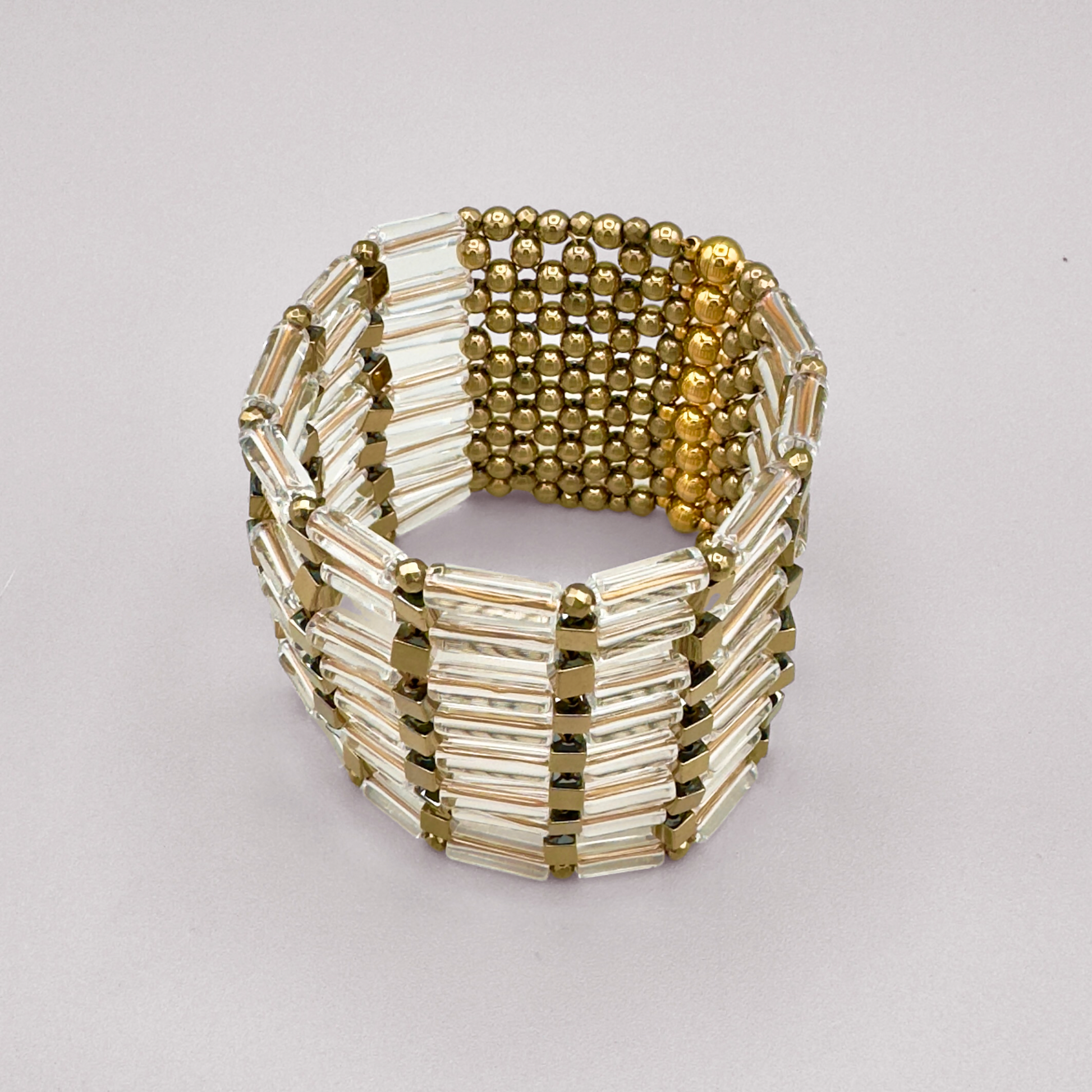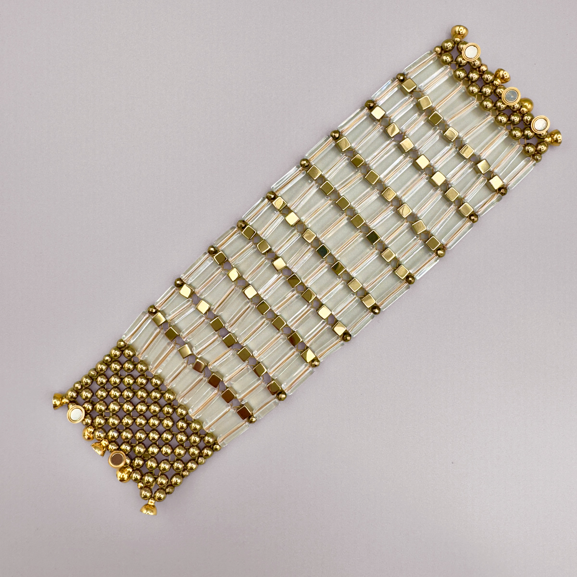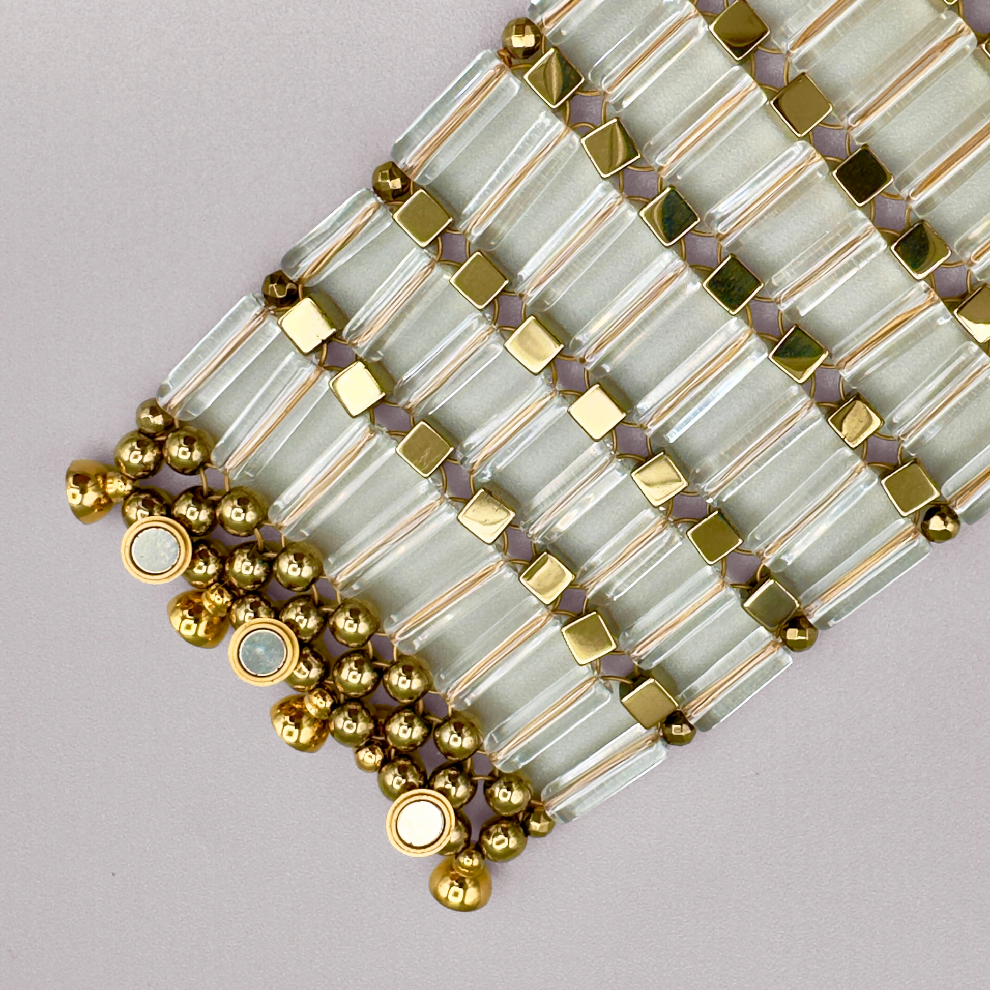 Style notes: Thanks to the row of strong jewelry magnets, this Bracelet can be put on single-handedly. Just let the magnets leap together and the Bracelet is secured. Style it with the matching Clear Quartz + Gold Choker Necklace.