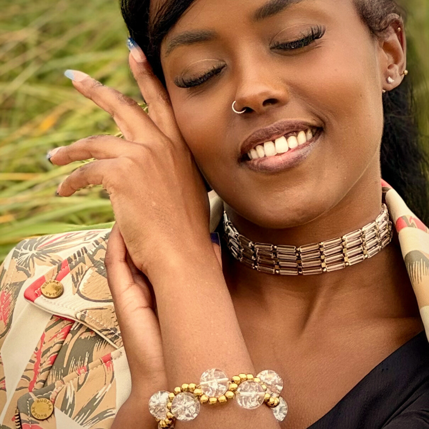 Style notes: Adjust it to any length you desire, however, it was designed to be a tight fit. Style it with the matching Bracelet in Clear Quartz + Gold.