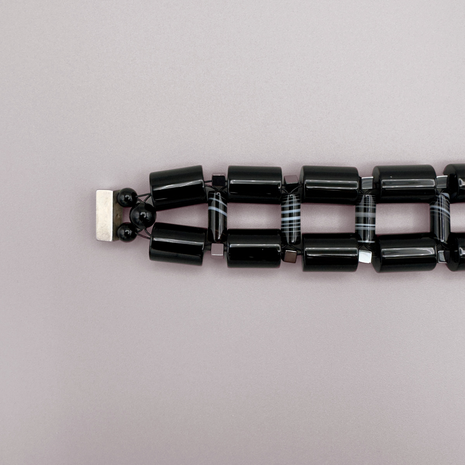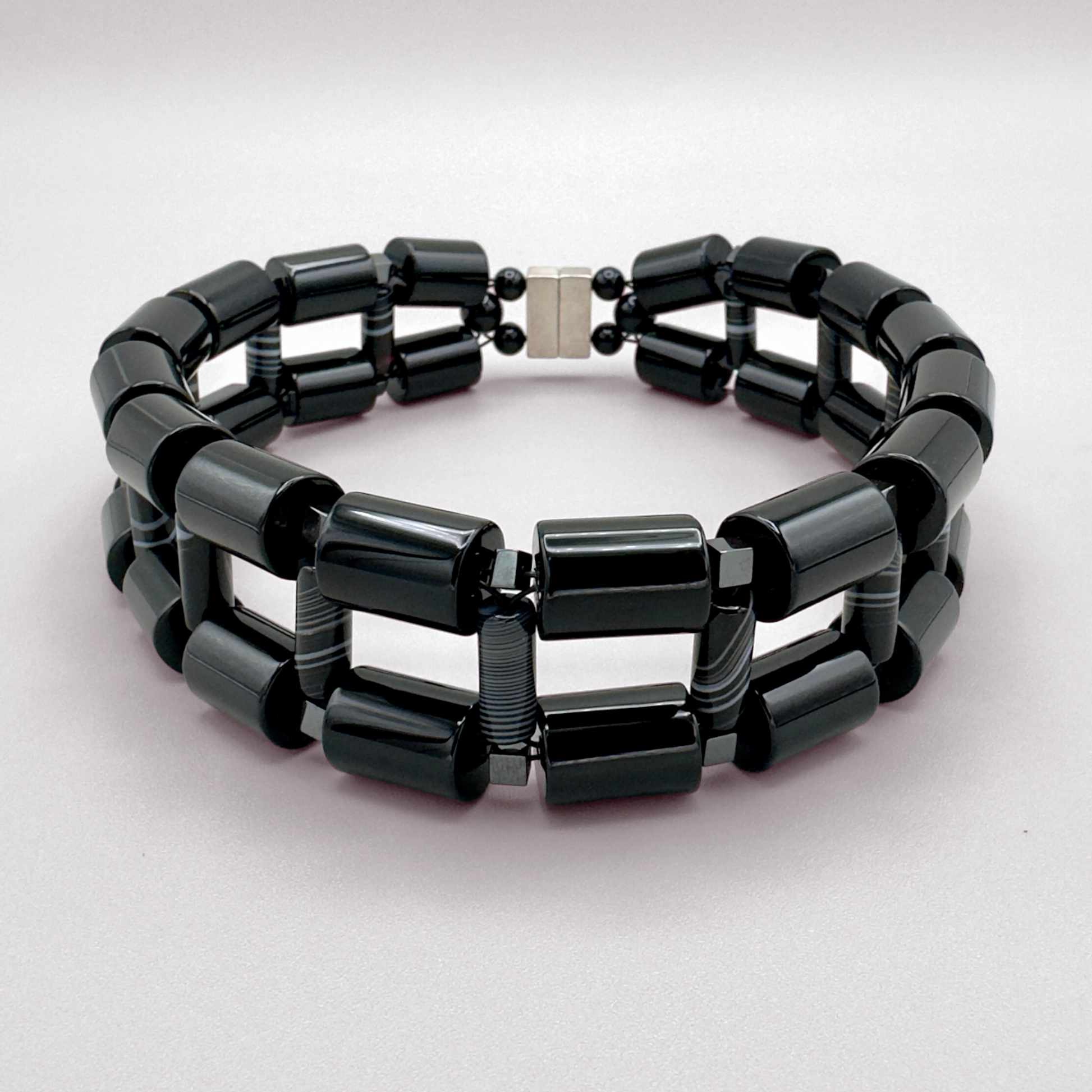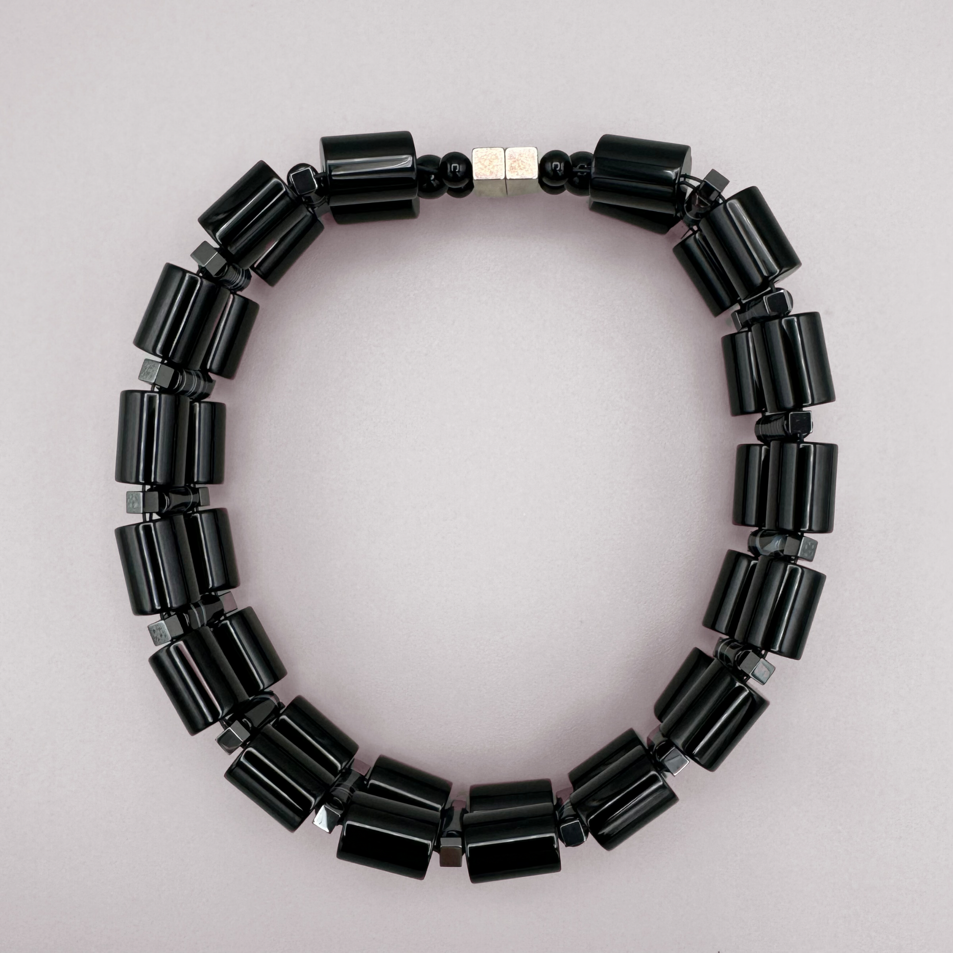 Style notes: Thanks to the pair of exceptionally strong jewelry magnets, this piece can be put on single-handedly. Just let the magnets leap together and the Necklace is secured. Style it with the matching Black Onyx + Black Sardonyx Bracelet.