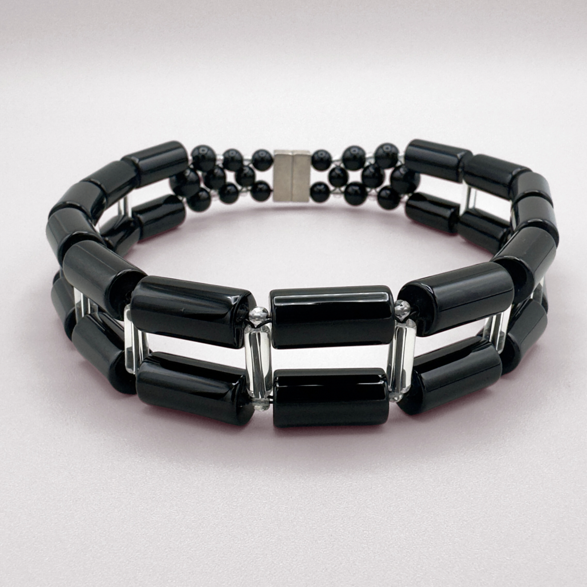Style notes: Thanks to the pair of exceptionally strong jewelry magnets, this piece can be put on single-handedly. Just let the magnets leap together and the Necklace is secured. Style it with the matching Black Onyx + Clear Quartz Bracelet.
